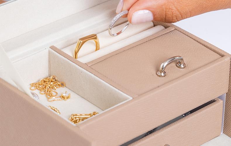 O desejo de manter as joias como novas ao longo dos anos é de todos. Mas poucos sabem que além do cuidado com a limpeza, é muito importante se preocupar com o armazenamento. Utilizar um porta-joias com compartimentos adequados prolonga a vida útil dos brincos, anéis, colares e pulseiras. Conheça os novos porta-joias da… Continuar lendo O porta-joias dos sonhos